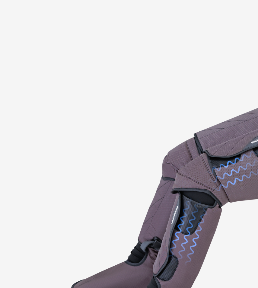 Эргономичная конструкция в виде чулка обеспечивает глубокий массаж всей ноги — от стоп до бедер. Каждая зона получает свою порцию заботы и расслабления. Возможность настроить массаж для определенных частей ног: стоп, икр, бедер.